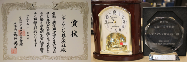 2025年11月8日には日本点字図書館で開催された授賞式「日点みんなの集い」において、表彰を受けました。